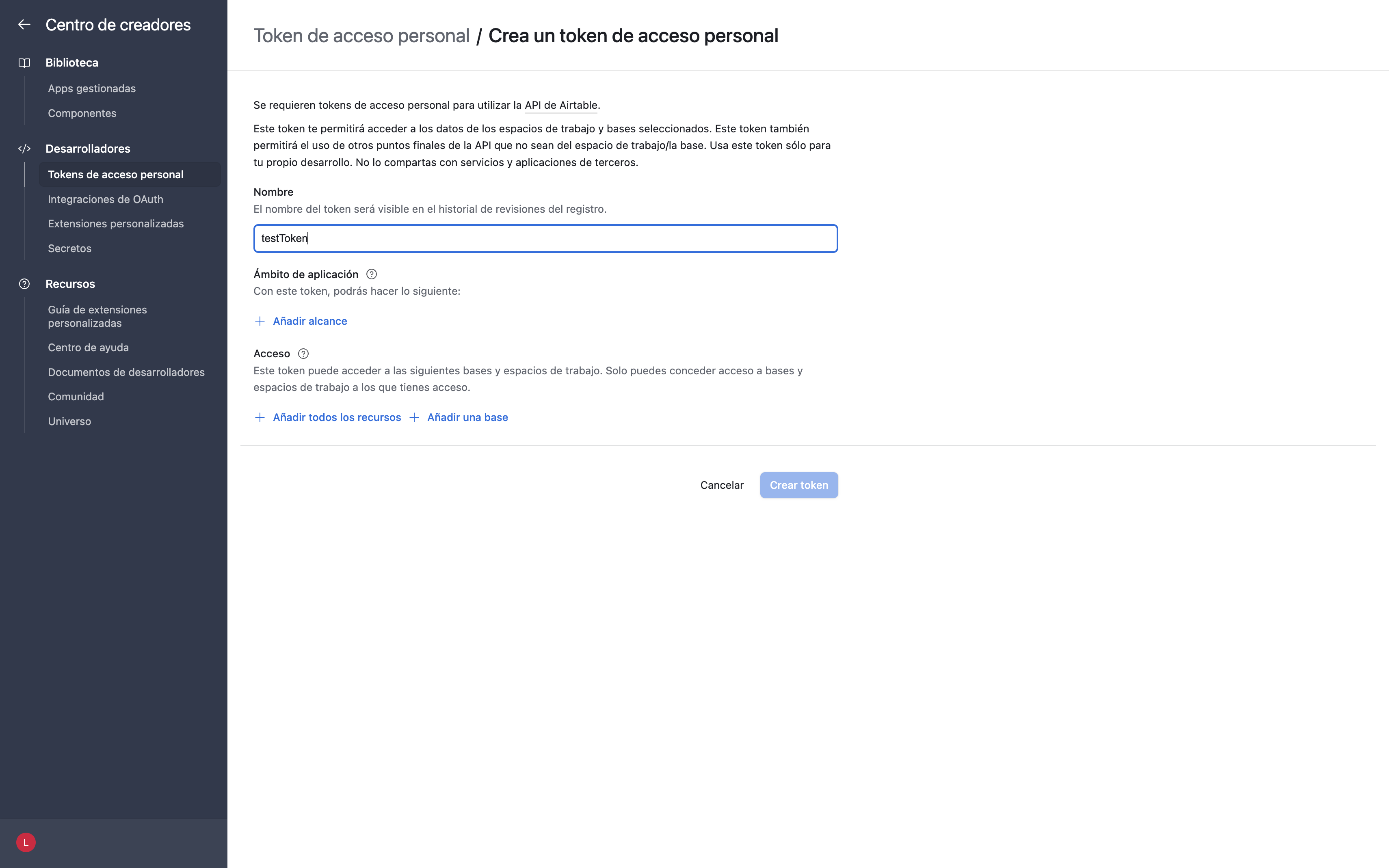 El Personal Access Token es tu “llave maestra” para acceder a la API de forma segura y controlada. Estos tokens te permiten elegir exactamente a qué bases de datos y con qué permisos quieres acceder, evitando dar acceso total cuando no hace falta.
